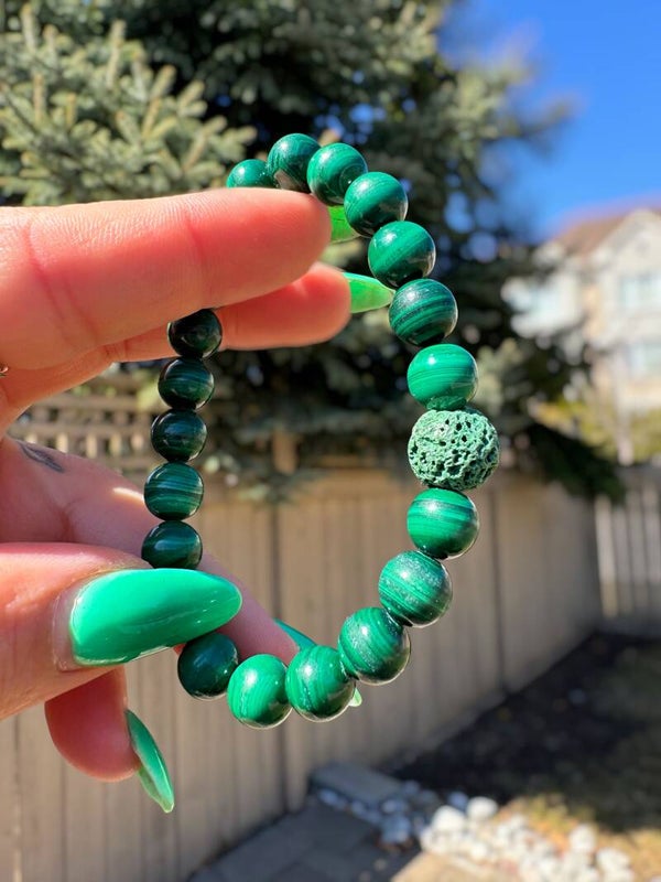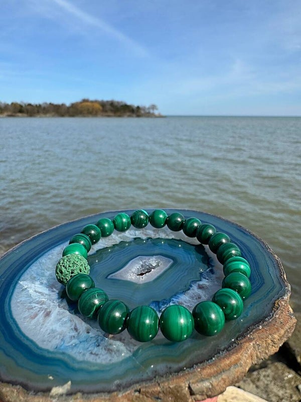 Malachite: A powerful stone of transformation, protection, and emotional healing. It absorbs negative energy and encourages positive change
