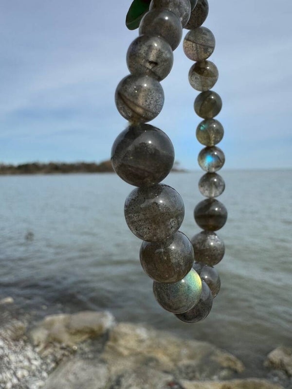 Labradorite is a mystical gemstone known for its iridescent play of colors and is believed to enhance intuition, protection, and transformation